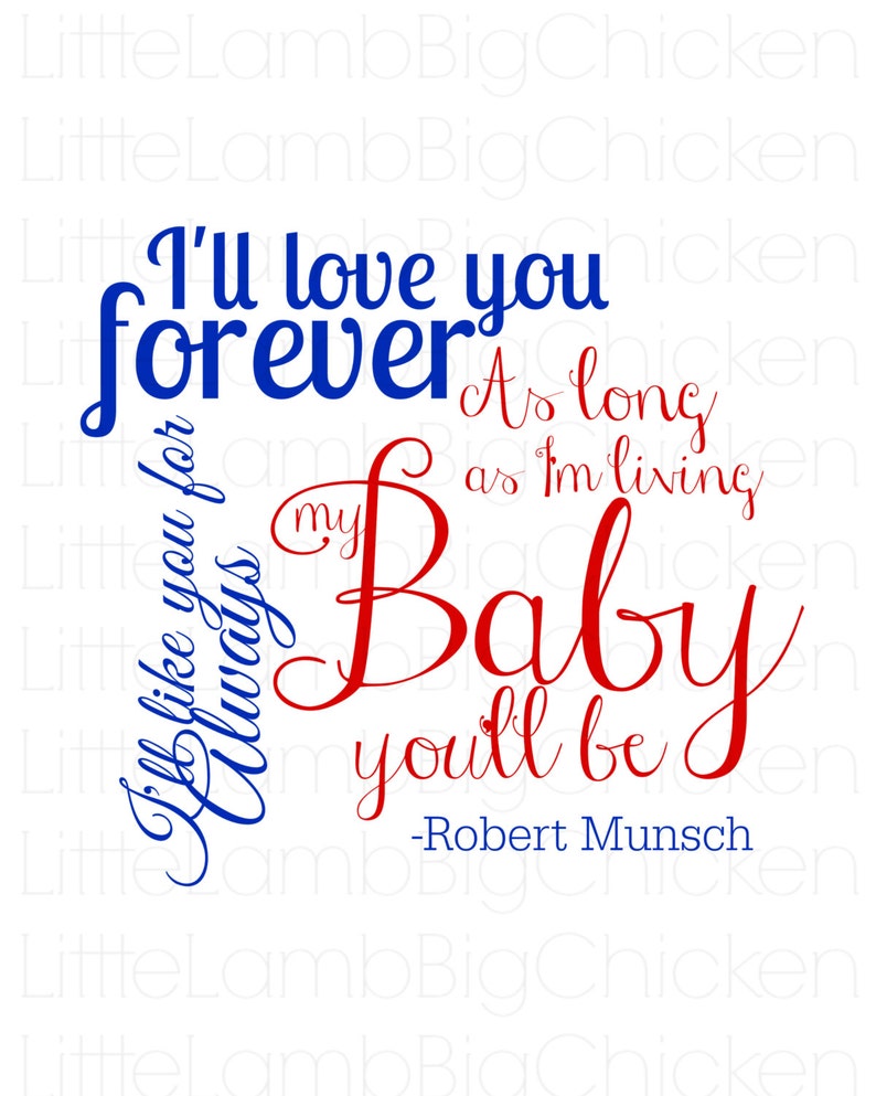 11 Love You Forever Robert Munschs extraordinary tale is a gentle statement of the unwavering love a parent has for their kid. Perfect for a baby shower gift a kids room decoration and could be used for girls or boys May 16 2013 - This is a digital printable with the famous quote from Robert Munschs book Ill love you.