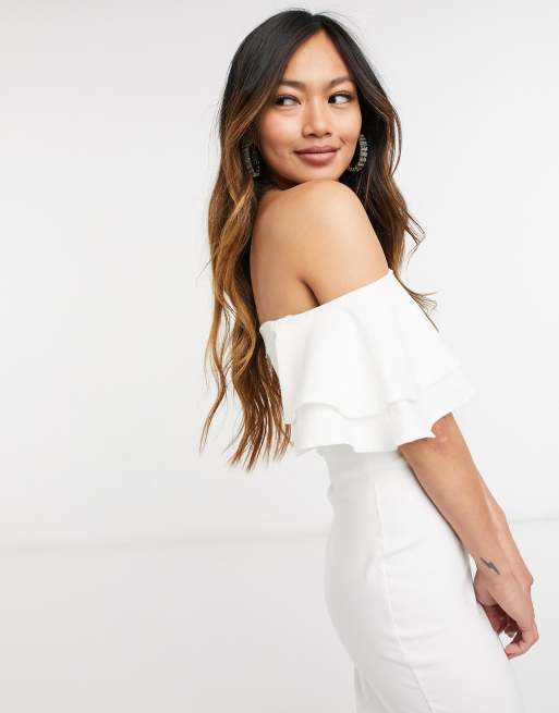 Femme Luxe Off The Shoulder Midi Dress In White Asos